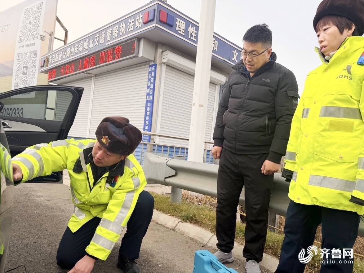 12月16日 ,一辆鲁 A 车牌轿车停靠在山东高速滨州展开有限公司滨城北收费中心站外广场,司机王先生神色焦急地向作业人员挥手求助。